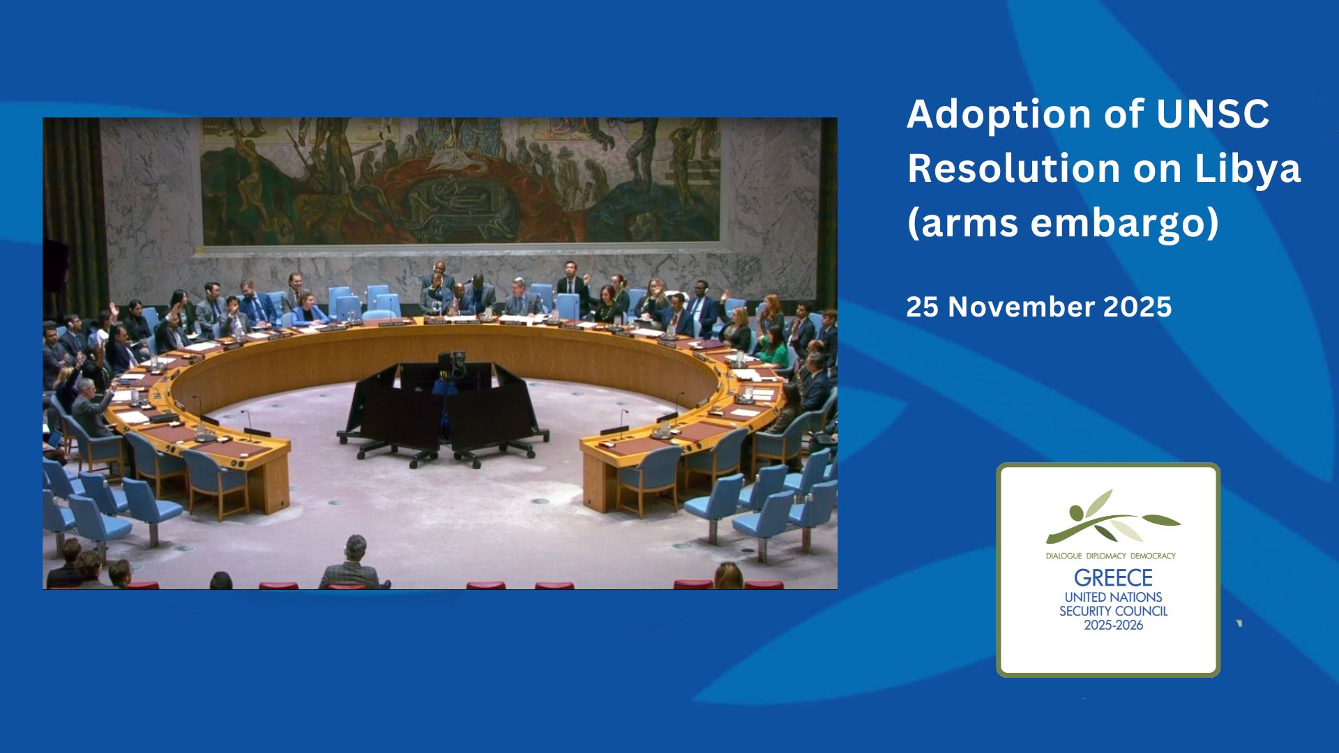 Επεξήγηση της ψήφου της Ελλάδας – Υιοθέτηση της απόφασης 2804 (2025) του Συμβουλίου Ασφαλείας των Ηνωμένων Εθνών σχετικά με το εμπάργκο όπλων στη Λιβύη