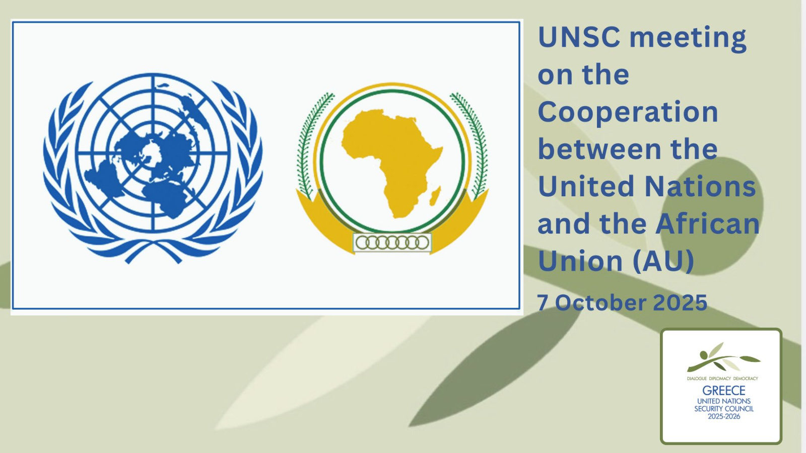 Η ετήσια ενημέρωση του Συμβουλίου Ασφαλείας για τη συνεργασία μεταξύ των Ηνωμένων Εθνών και περιφερειακών και υποπεριφερειακών οργανώσεων εστίασε εφέτος στην Αφρικανική Ένωση. Κάτα την σημερινή συνεδρίαση, η Ελλάδα: